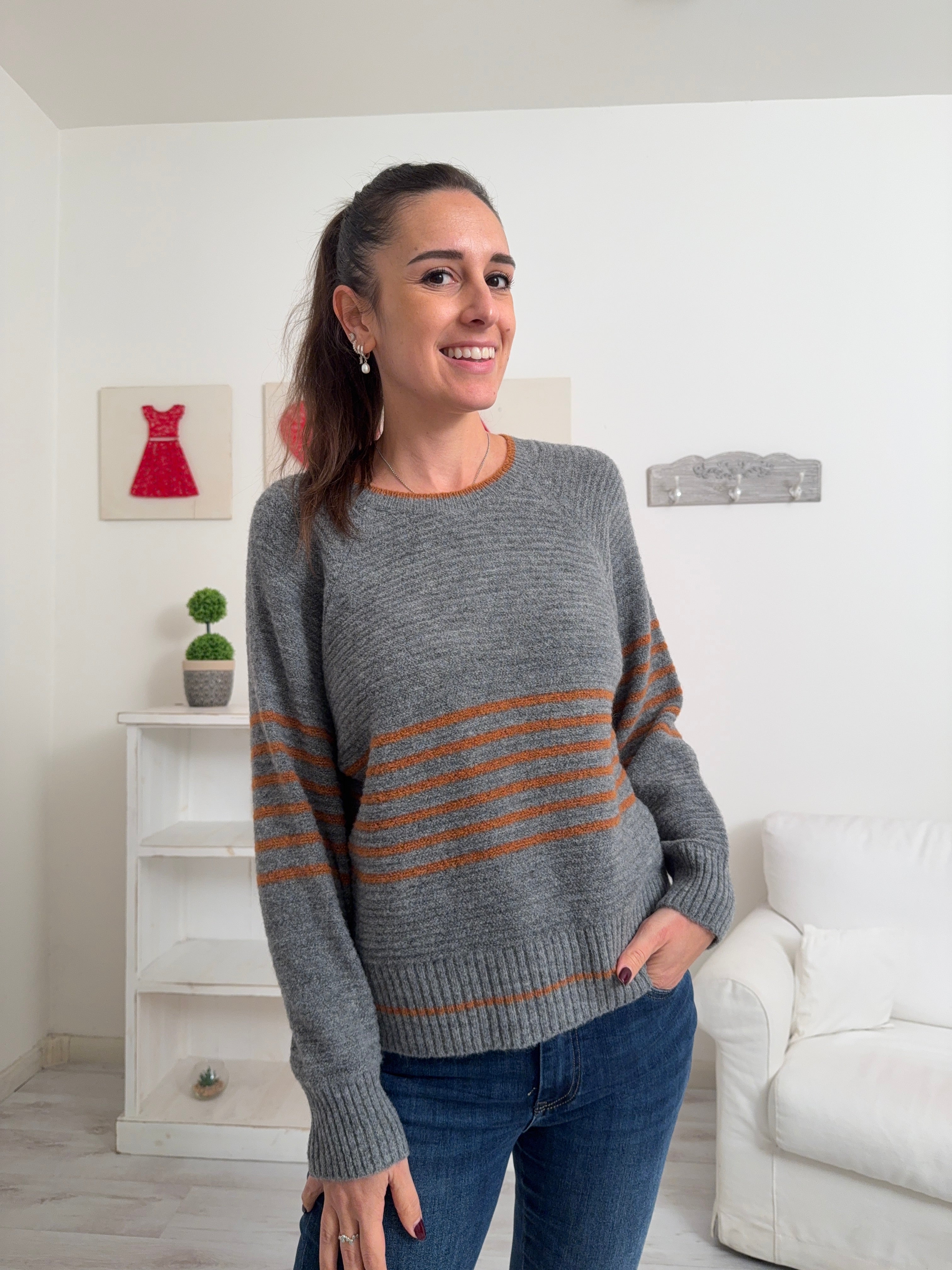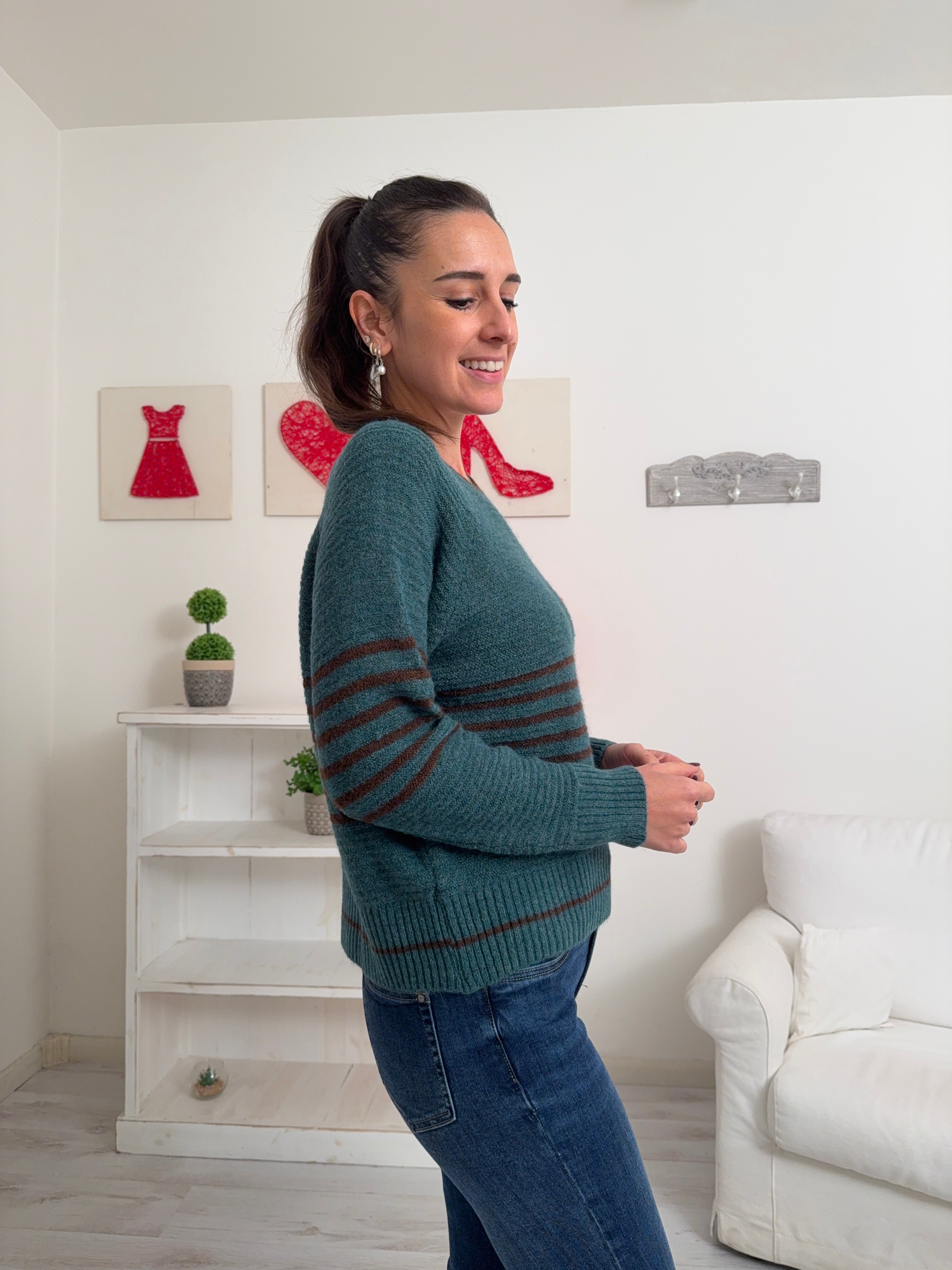 Descrizione: Maglione in misto lana con collo tondo e maniche lunghe.