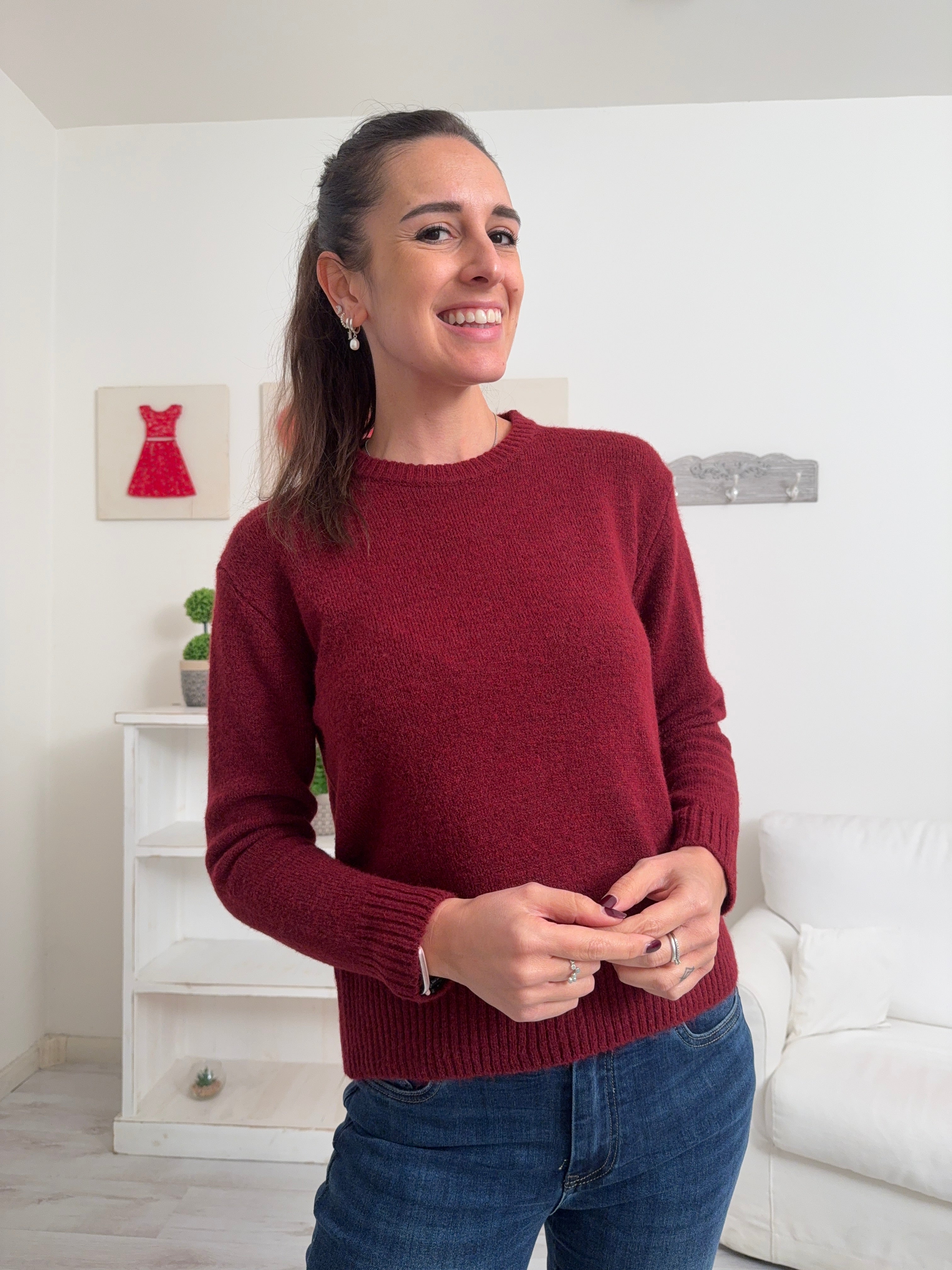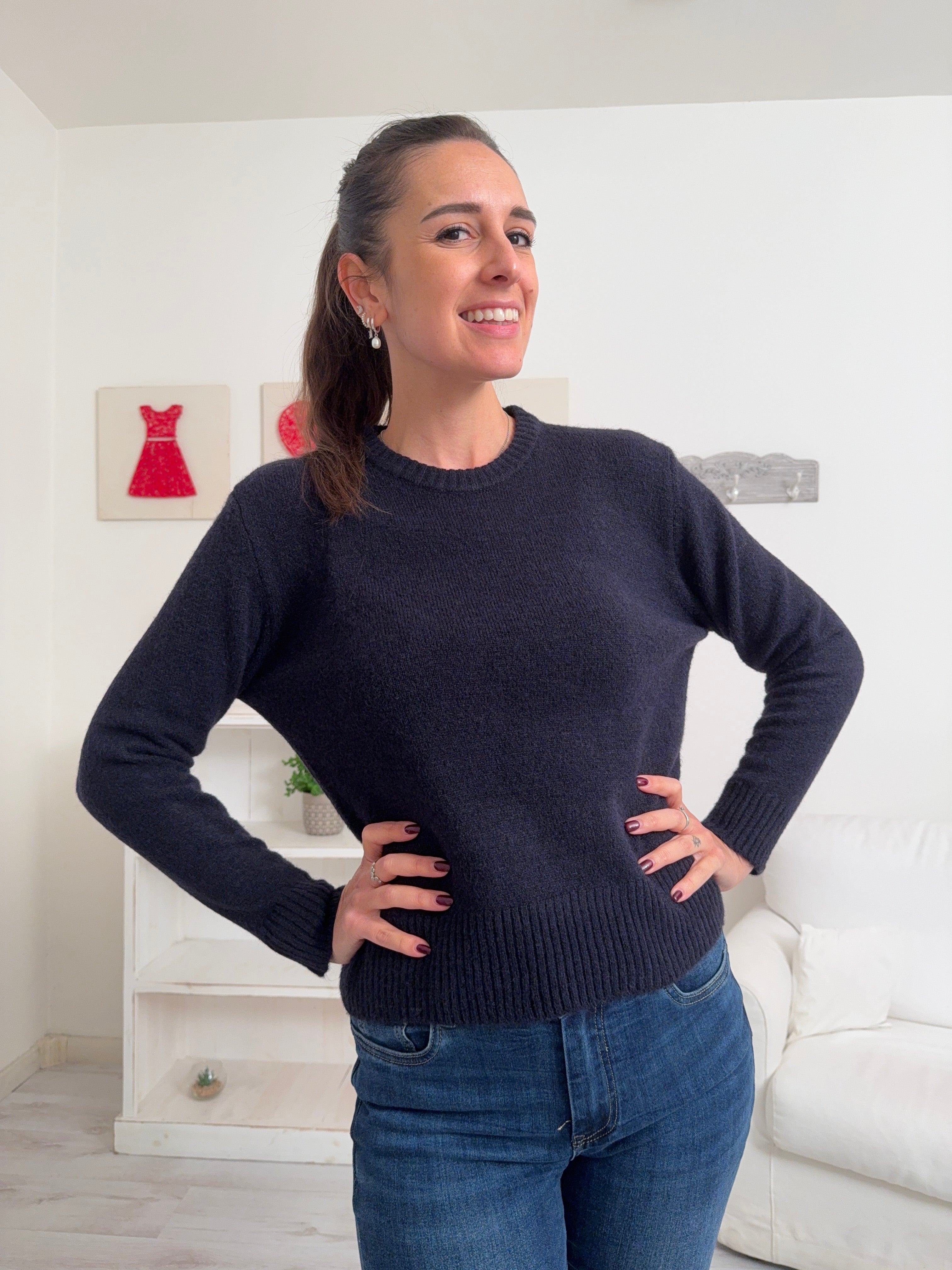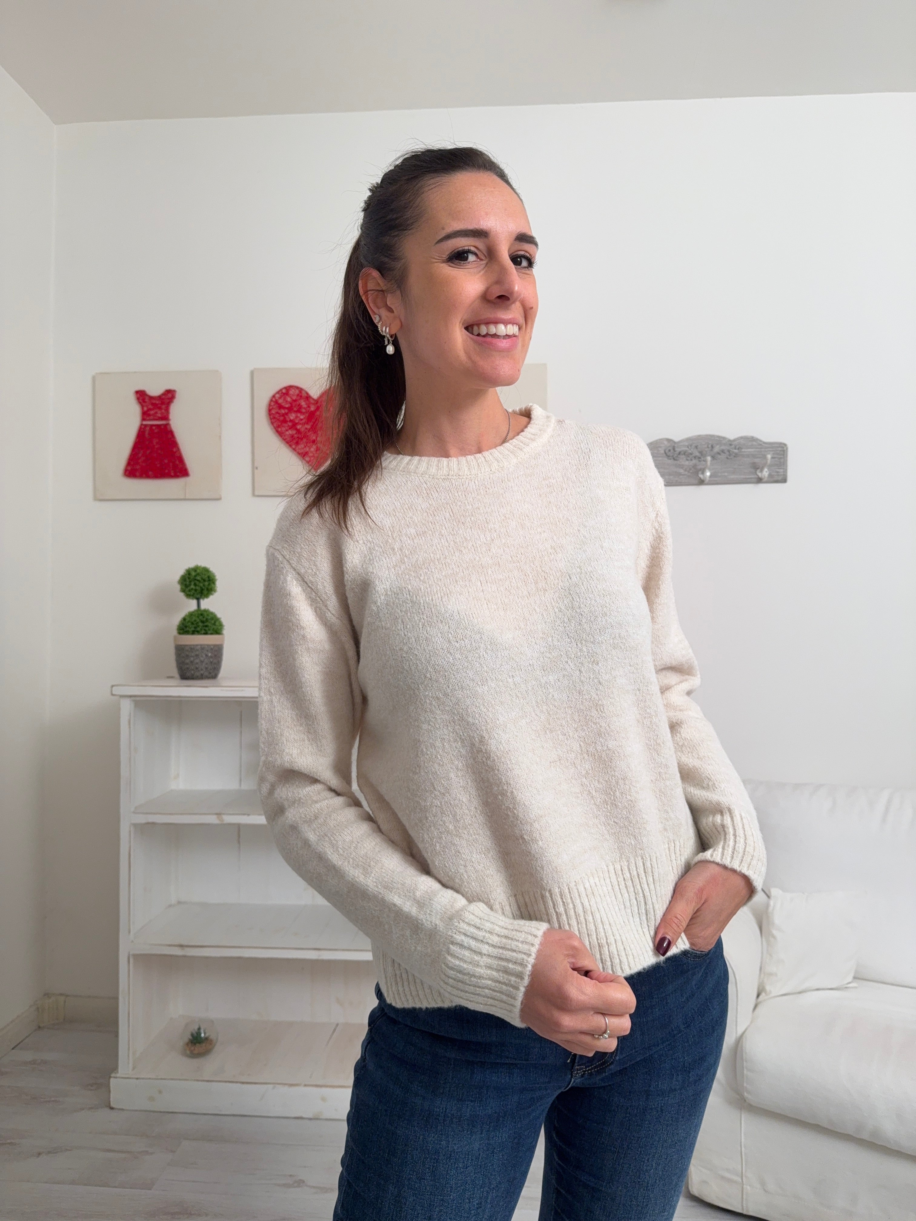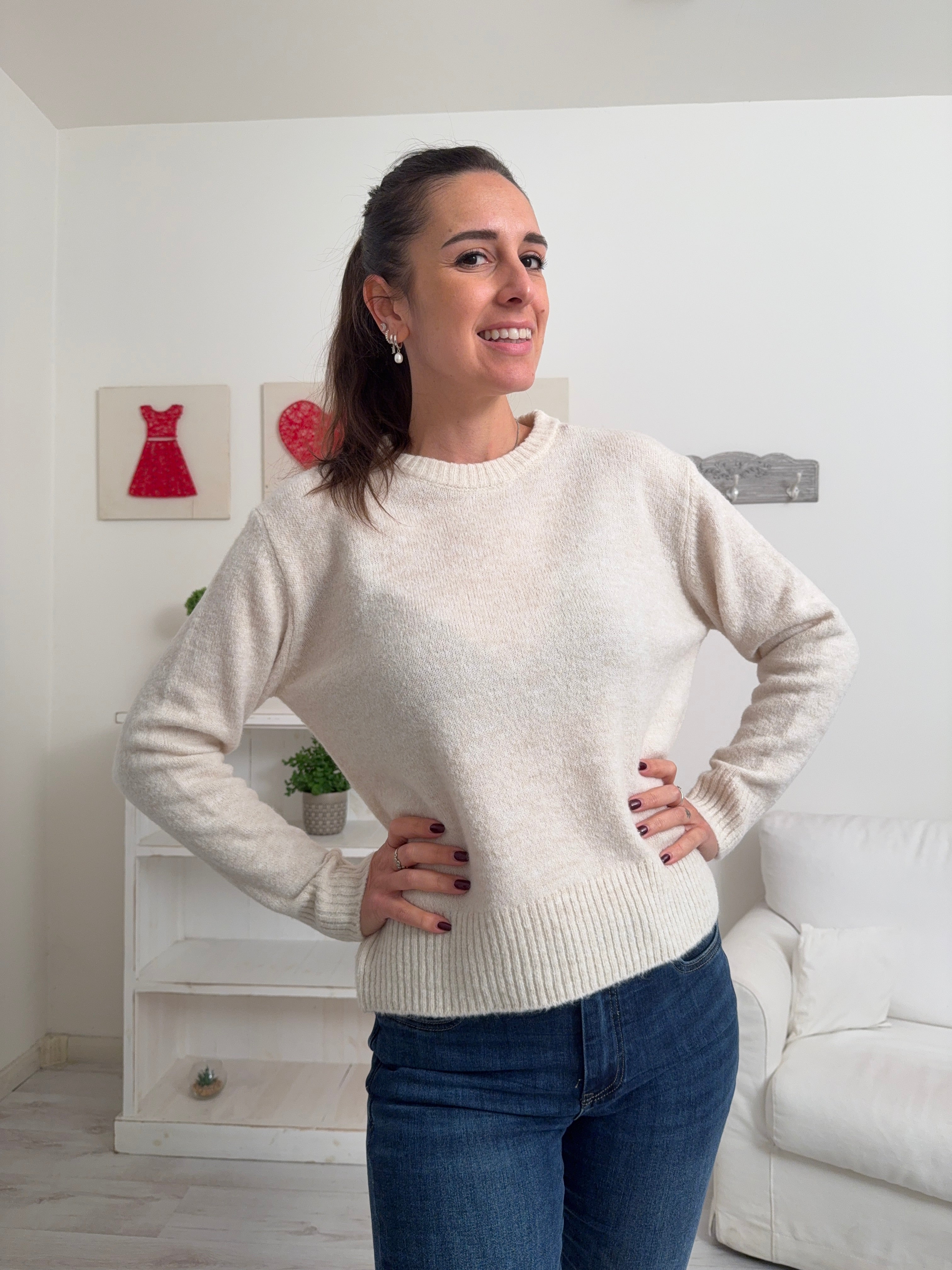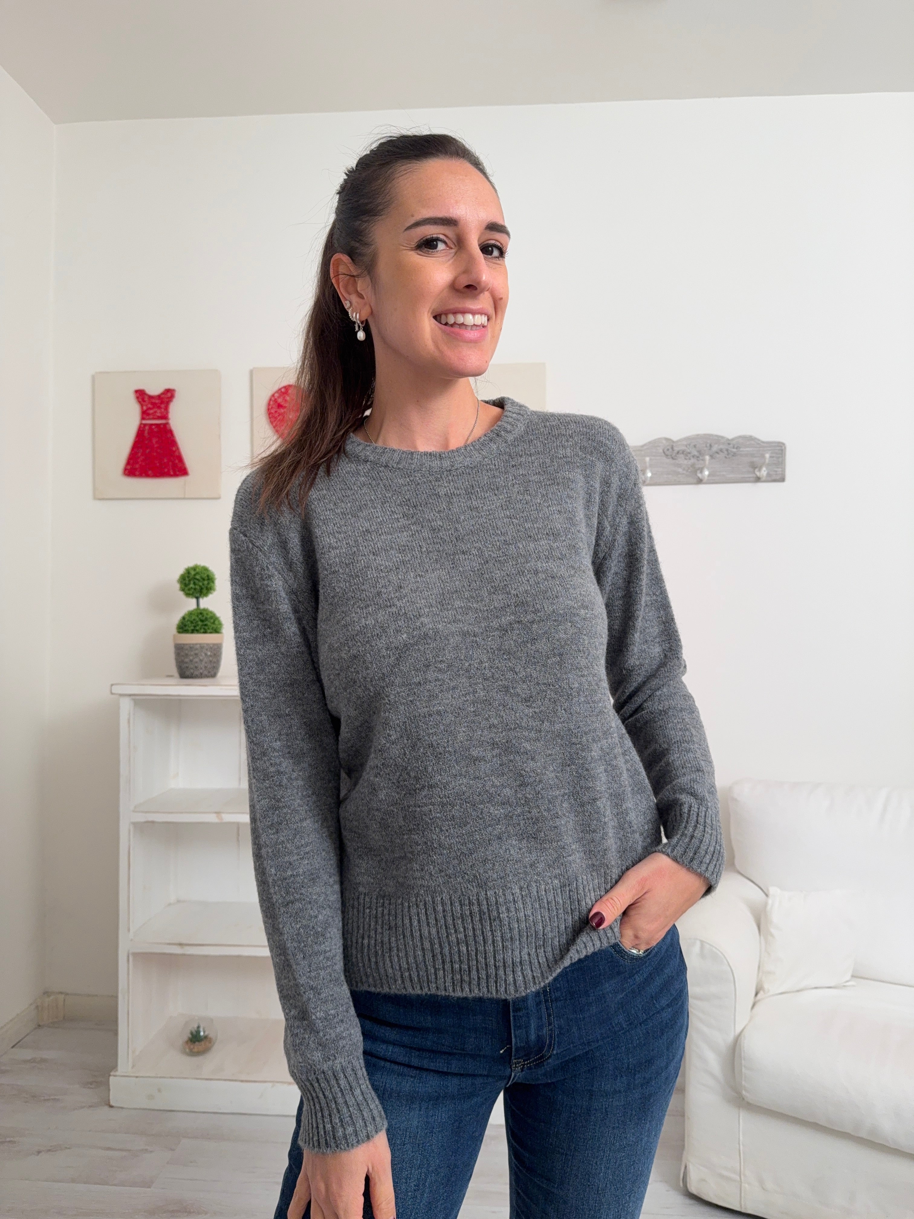 Descrizione: Maglione in misto lana con collo tondo e maniche lunghe.