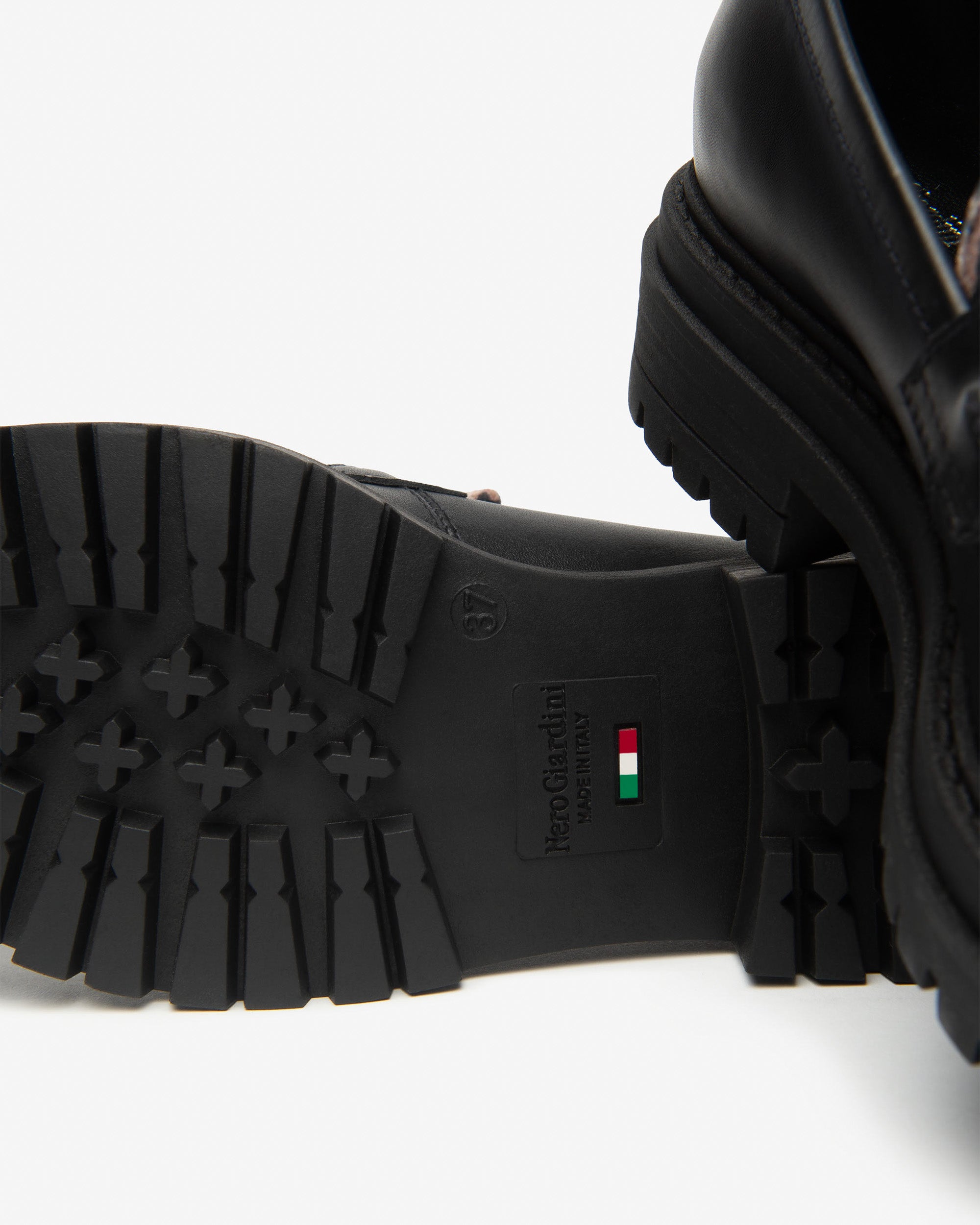 Mocassini NeroGiardini, personalità e stile unico. Le calzature NeroGiardini sono realizzate in Italia, utilizzando materiali di qualità e le più avanzate tecniche di lavorazione. Ogni scarpa è il risultato della esperta competenza artigiana tramandata di generazione in generazione. Tutti i modelli sono progettati per offrire comodità e versatilità in ogni momento della giornata, dal lavoro alla serata speciale. Il reparto stile NeroGiardini è costantemente alla ricerca di nuove tendenze per offrire calzature sempre attuali e originali. NeroGiardini propone anche una collezione di borse, perfettamente abbinabili alle calzature, per un total look Made in Italy impeccabile. La produzione Made in Italy delle calzature NeroGiardini è sottolineata dal tricolore impresso sulle suole e sul packaging.