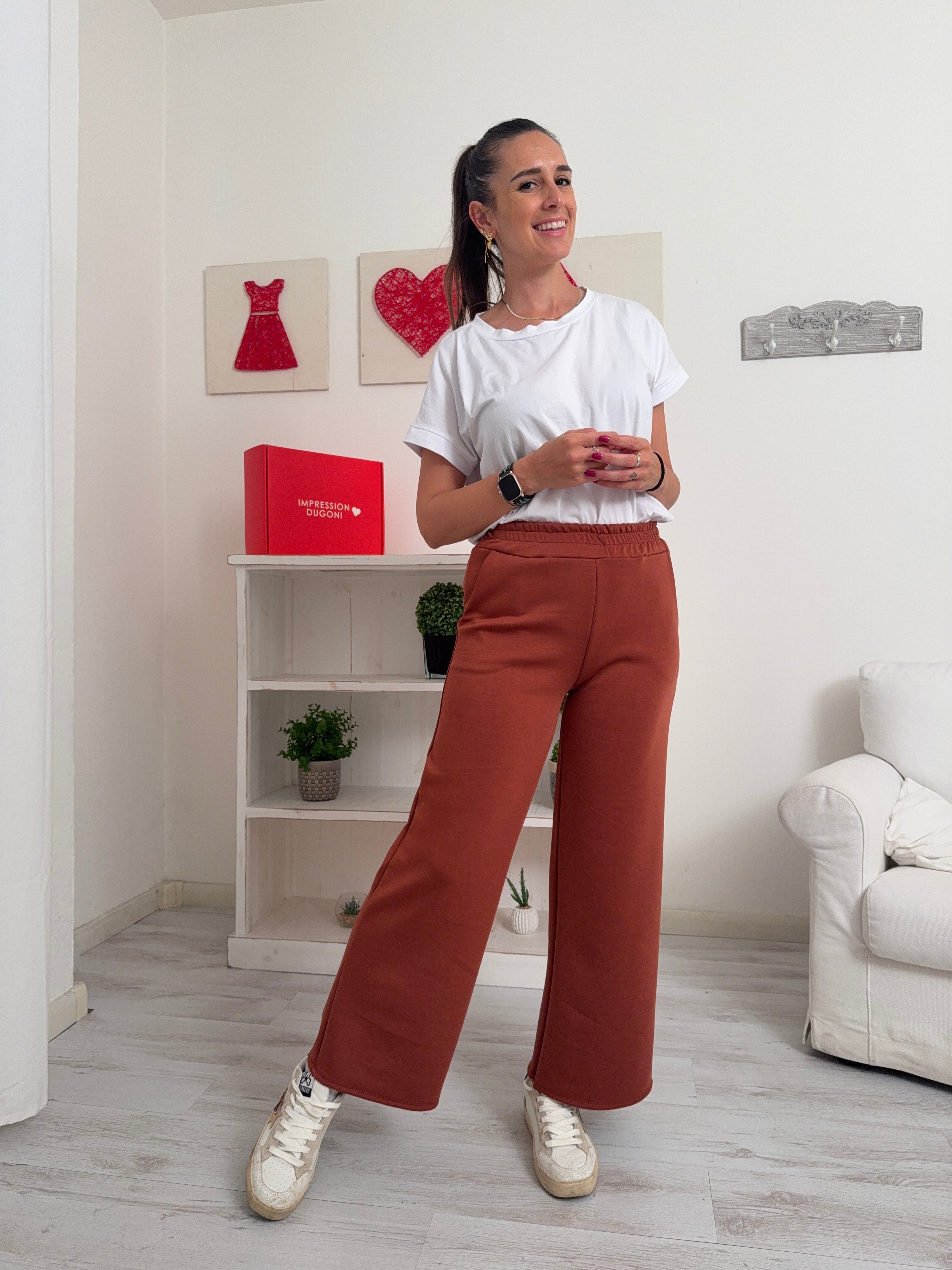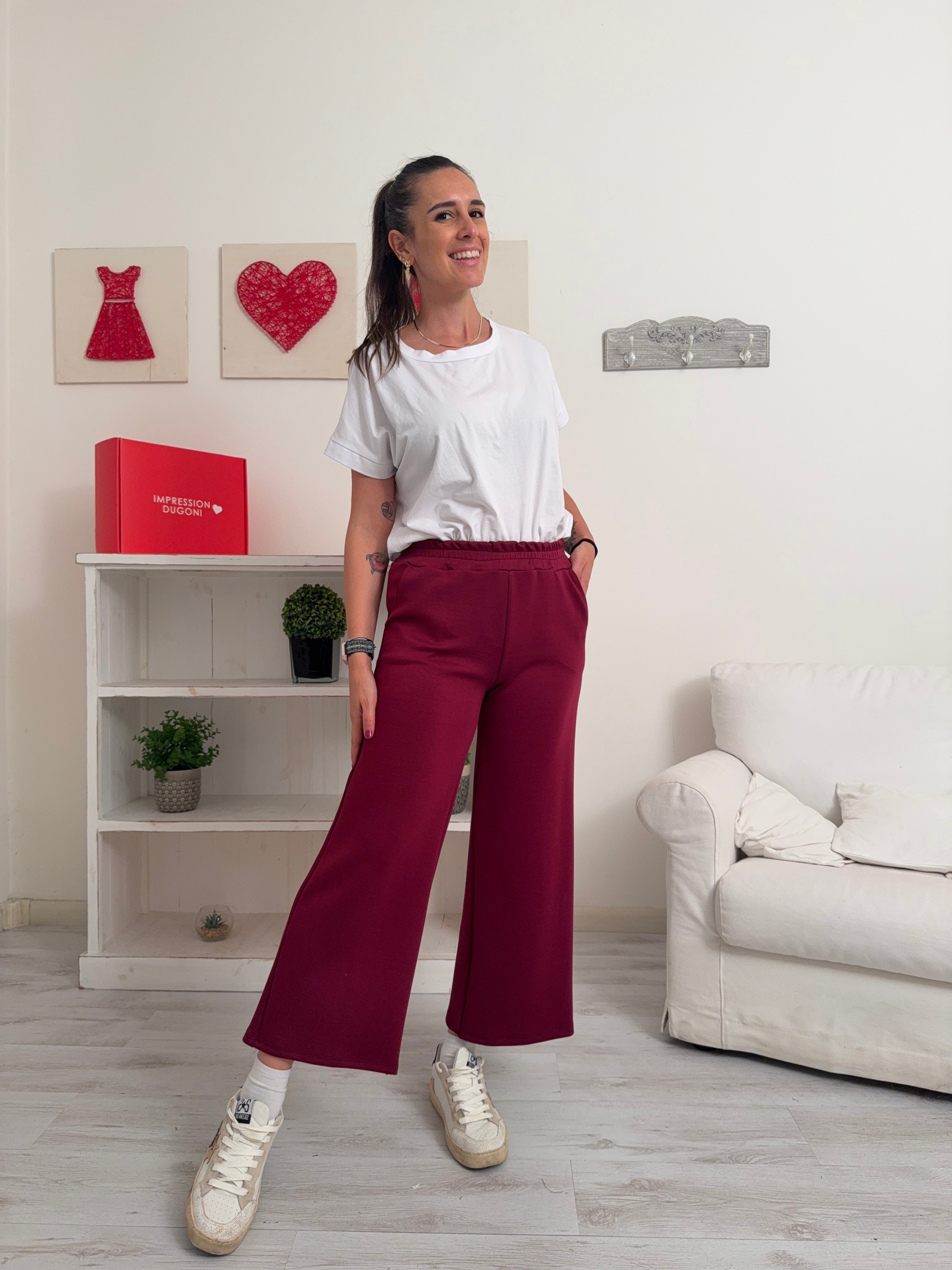 Descrizione: Pantalone morbidissimo a palazzo con 2 tasche ed elastico in vita.