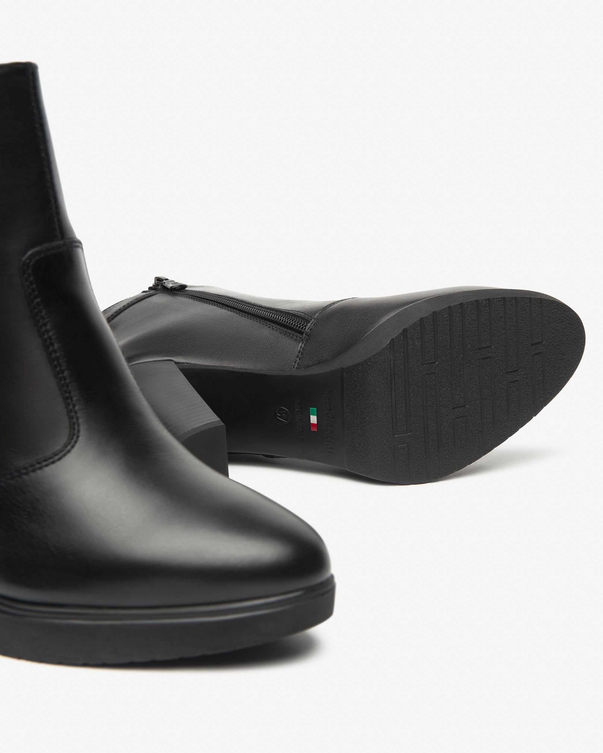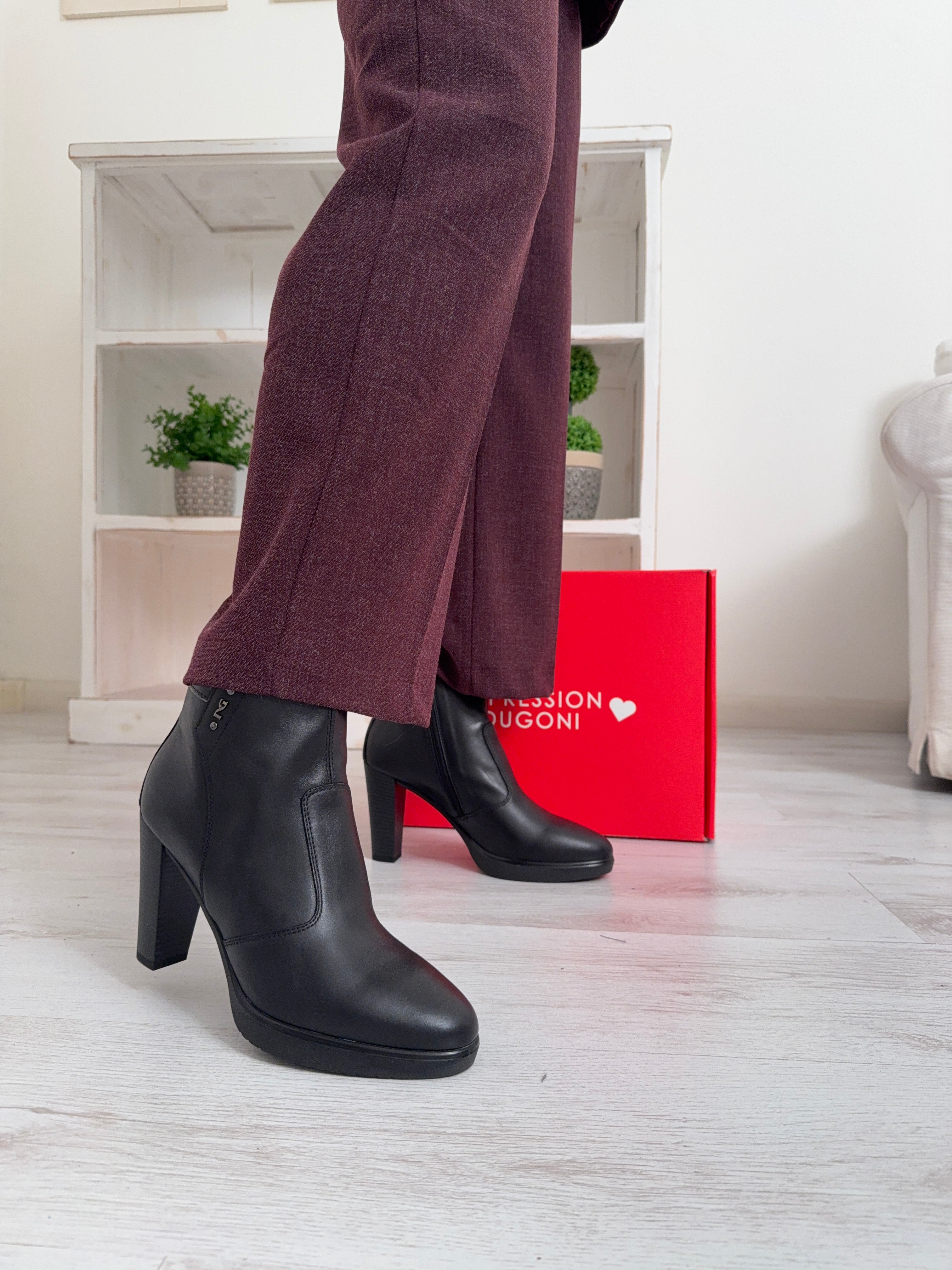 Tronchetti NeroGiardini, personalità e stile unico. Le calzature NeroGiardini sono realizzate in Italia, utilizzando materiali di qualità e le più avanzate tecniche di lavorazione. Ogni scarpa è il risultato della esperta competenza artigiana tramandata di generazione in generazione. Tutti i modelli sono progettati per offrire comodità e versatilità in ogni momento della giornata, dal lavoro alla serata speciale. Il reparto stile NeroGiardini è costantemente alla ricerca di nuove tendenze per offrire calzature sempre attuali e originali. NeroGiardini propone anche una collezione di borse, perfettamente abbinabili alle calzature, per un total look Made in Italy impeccabile. La produzione Made in Italy delle calzature NeroGiardini è sottolineata dal tricolore impresso sulle suole e sul packaging.