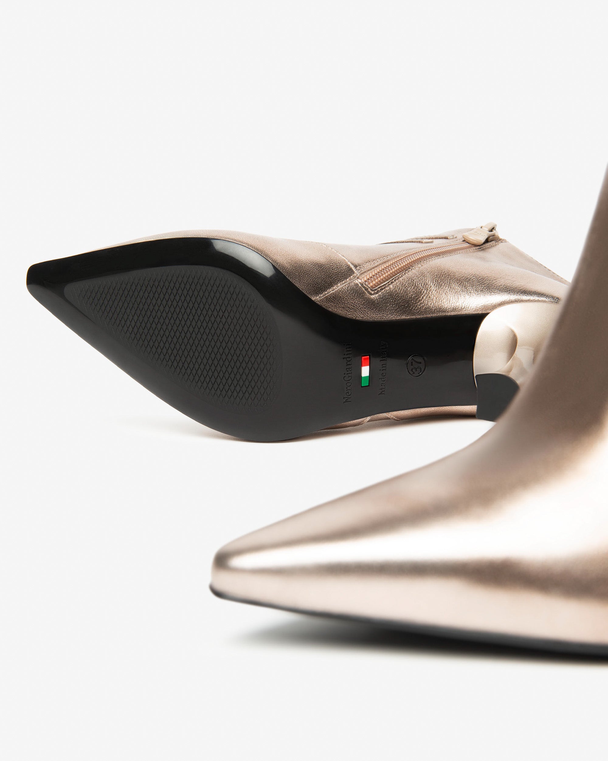 NeroGiardini Premium Collection è la linea Made in Italy dedicata a chi desidera esprimere la propria raffinatezza e il proprio stile in ogni occasione speciale. Ogni modello di scarpa è realizzato in Italia con la massima cura per i dettagli, per un look impeccabile e sofisticato. I tronchetti NeroGiardini Premium Collection donano un'eleganza senza tempo agli outfit di ogni evento speciale, che si tratti di un matrimonio, di una cena di gala o di un'occasione mondana. Ogni modello della NeroGiardini Premium Collection è realizzato con passione e maestria da artigiani specializzati, utilizzando solo pellami e materiali di qualità. Il risultato è un prodotto unico e raffinato, che non passerà inosservato.Per un total look davvero perfetto, NeroGiardini Premium Collection propone anche una selezione di borse e pochette create per abbinarsi perfettamente alle calzature della linea. Eleganti e raffinate, borse e pochette sono l'accessorio ideale per completare ogni outfit con un tocco di classe. La produzione Made in Italy delle calzature NeroGiardini è sottolineata dal tricolore impresso sulle suole e sul packaging.
