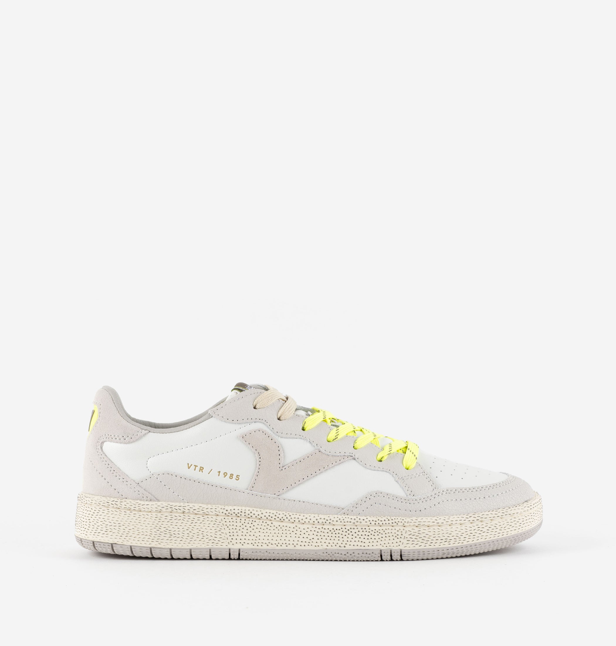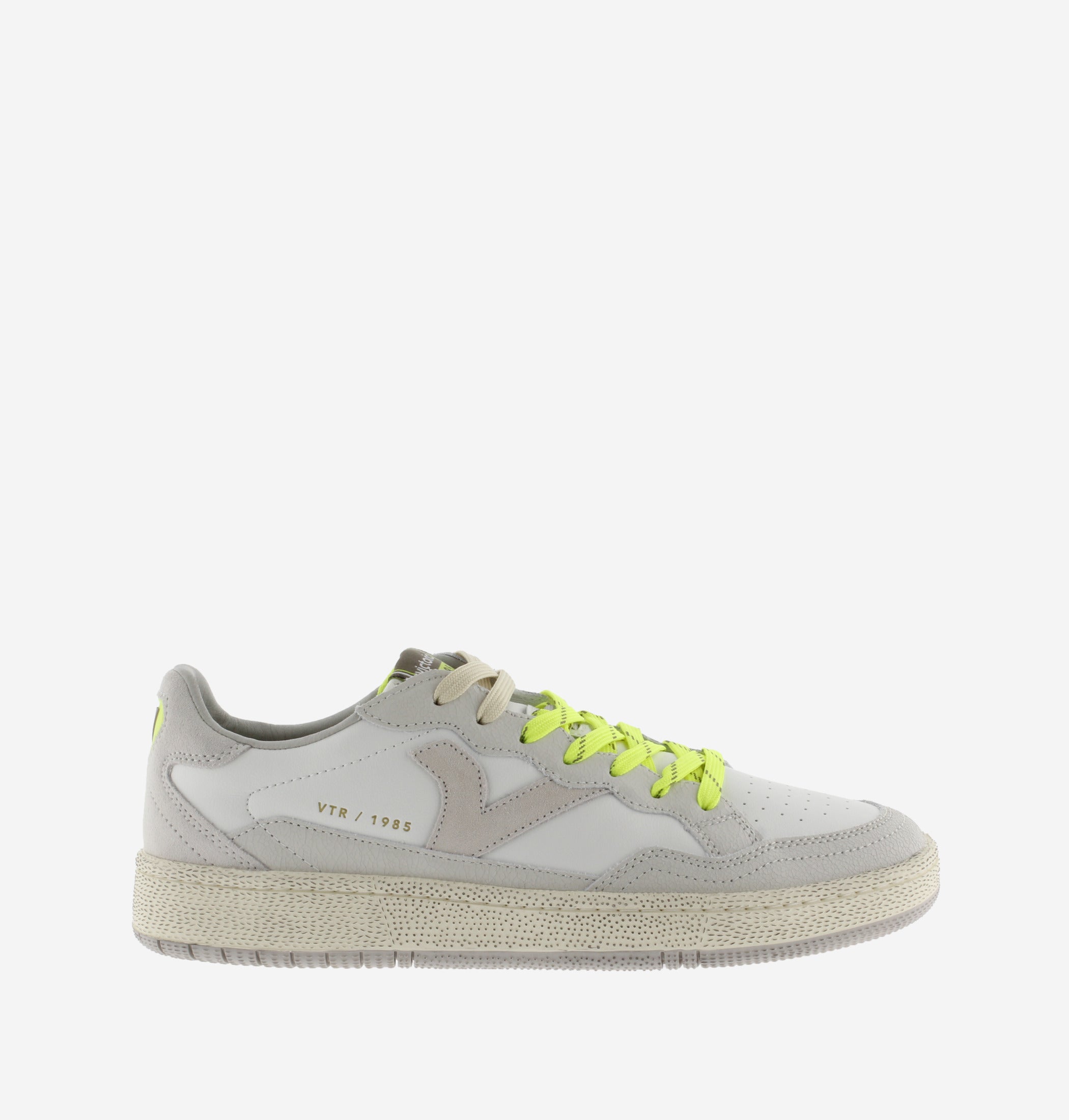 Descrizione: Sneakers in pelle con pezzi sovrapposti in crosta di pelle e dettagli in PU. Logo retrò di Victoria sul lato. Chiusura con lacci bicolori. Etichetta in gomma sul tallone. Inclusa una soletta in EVA ad alta densità per maggior comfort, e la punta è perforata per favorire la traspirazione. Suola bicolore in gomma 100% naturale con finitura "lavato invecchiato".