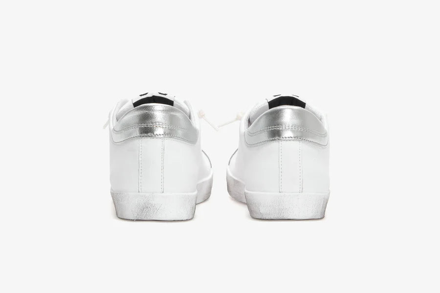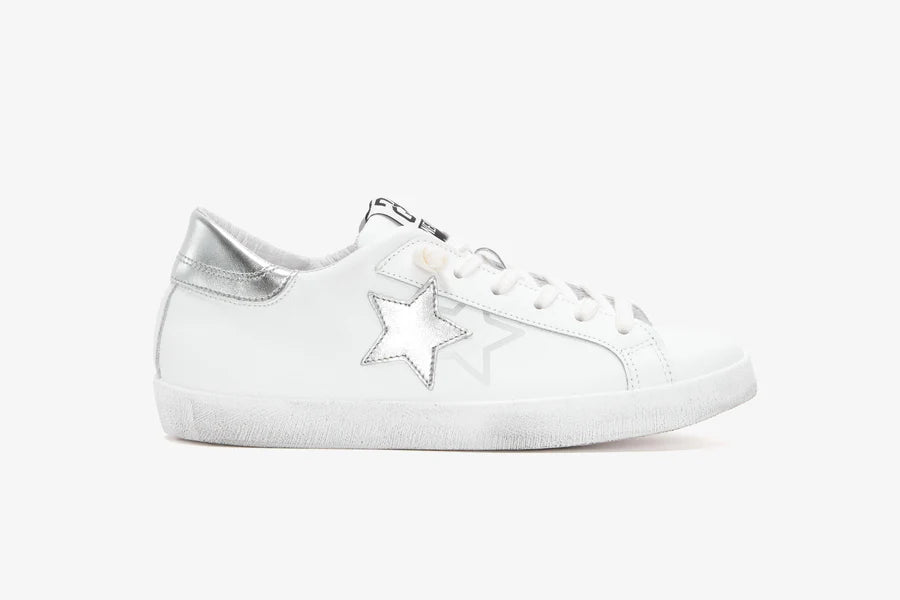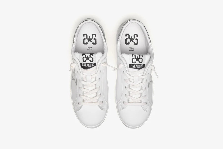 Sneakers prime star in pelle bianca con dettagli in pelle laminata argento