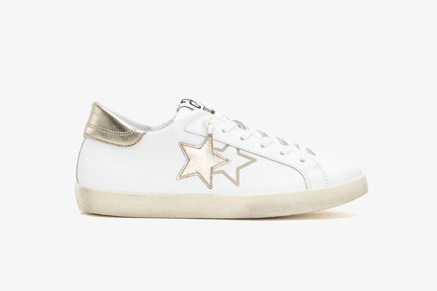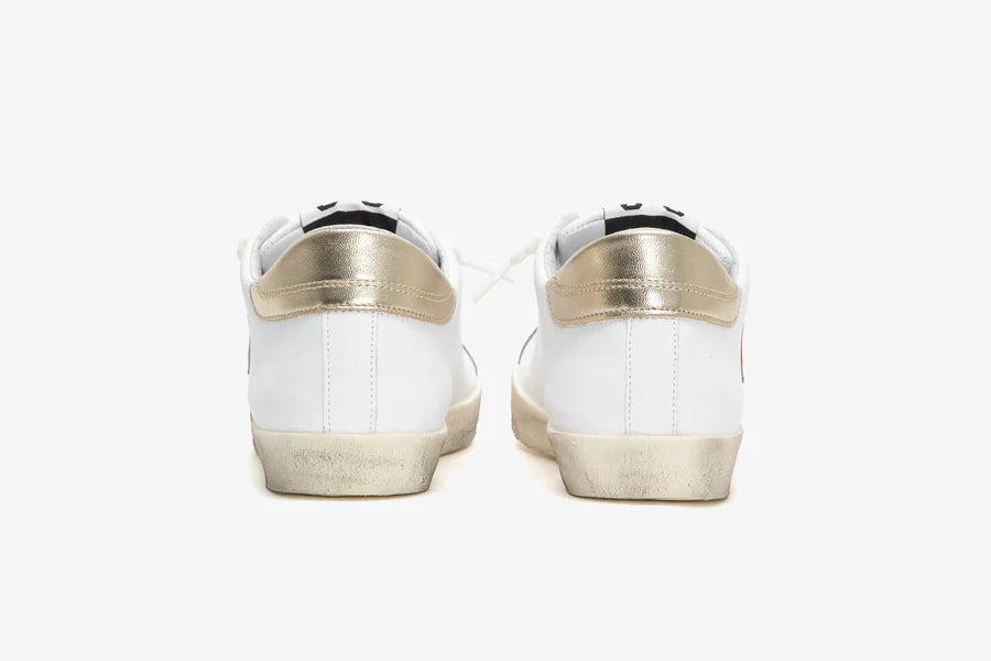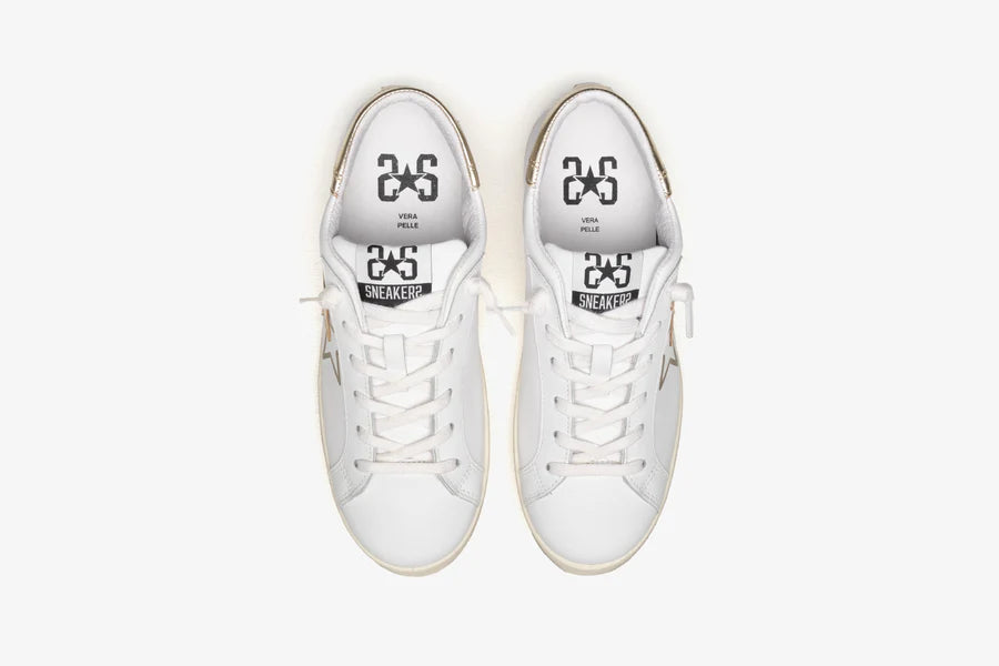 Sneakers prime star in pelle bianca con dettagli in pelle laminata dorata