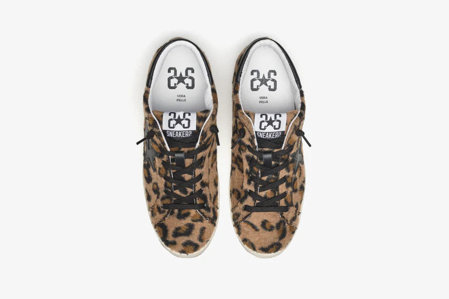 Sneakers prime star in ecofur maculato marrone e dettagli in pelle nera